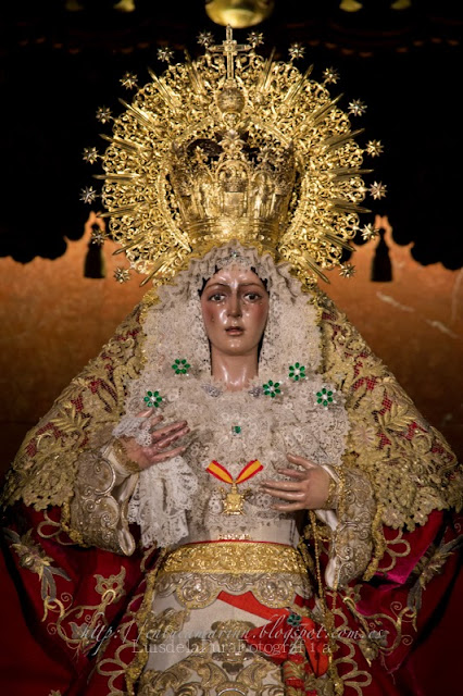 NUESTRA SEÑORA DE LA ESPERANZA MACARENA EN SU CAMARÍN TRAS HABERSE CELEBRADO EL SOLEMNE BESAMANOS. Basílica de Santa María de la Esperanza Macarena.